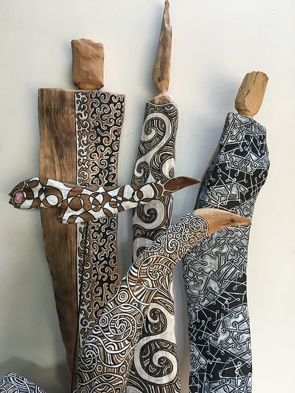 Bois trouvés habillés de noir et de blanc.