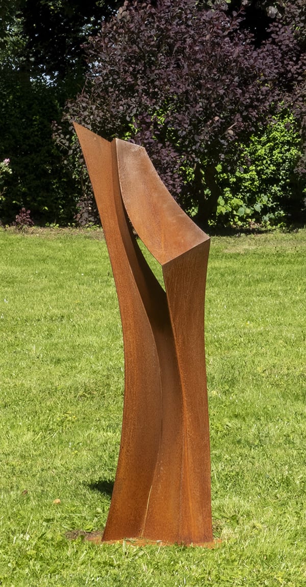 On bavarde avec ses sculptures dans un dialogue ininterrompu entre soi et le paysage qui les entoure. Le métal dessine graphiquement l’espace, installe des vides éloquents, qui invitent notre regard à s’aventurer dans un hors-champs imprévisible.