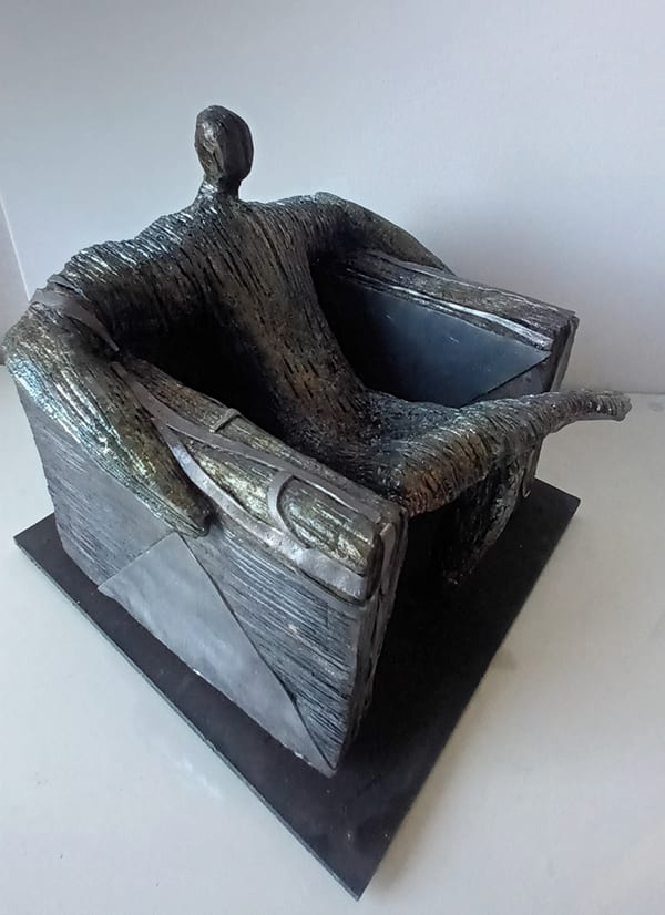 Matière universelle, à la fois subtile et fragile, charnelle et sombre, elle est un compromis entre la pierre et le métal, où à l’instar de la bande dessinée, que je pratique, elle raconte une histoire éminemment personnelle.