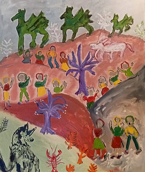 Je laisse vagabonder mon imaginaire et trace sur la toile des formes étranges, humaines ou animalières, riches en couleurs intenses ou douces.