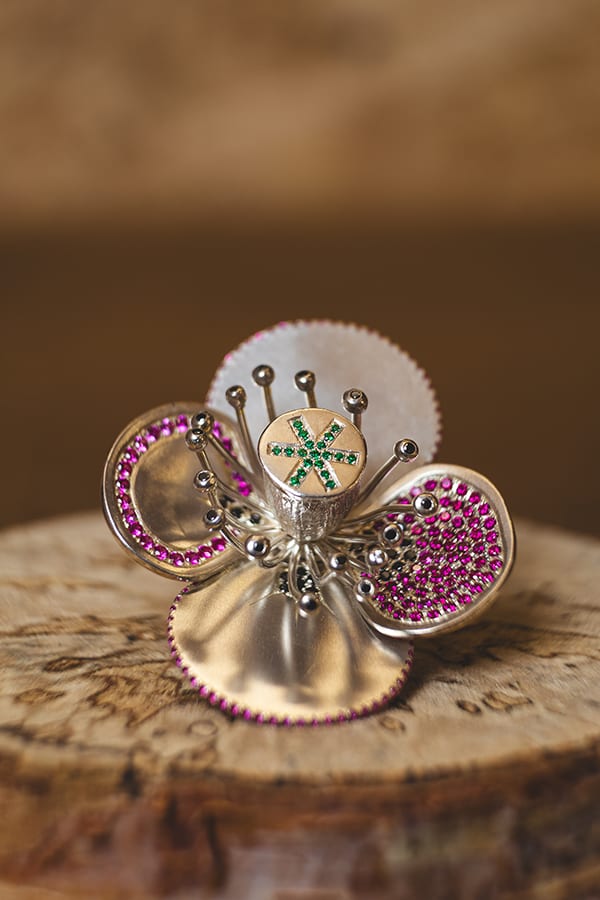 Capturer la lumière, immortaliser la nature, sublimer les couleurs, voici les arcanes qui inspirent mon travail de joaillière et sertisseuse. C’est la combinaison de tout ce qui me touche depuis mon plus jeune âge, qui a germé et mûri pendant des années afin de réaliser mon rêve devenu ma passion. Je crée minutieusement des bijoux en matières nobles, certains sertis de pierres fines, certains avec éléments végétaux, qui vous accompagneront pour un jour, un soir et plus si affinité.