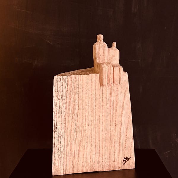 Bûches, rondins, branches, poutres, racines… c’est dans les morceaux de bois de nos contrées qu’elle taille sa touche personnelle, ses petits rêveurs , petits personnages minimalistes invitant à se poser avec sérénité.