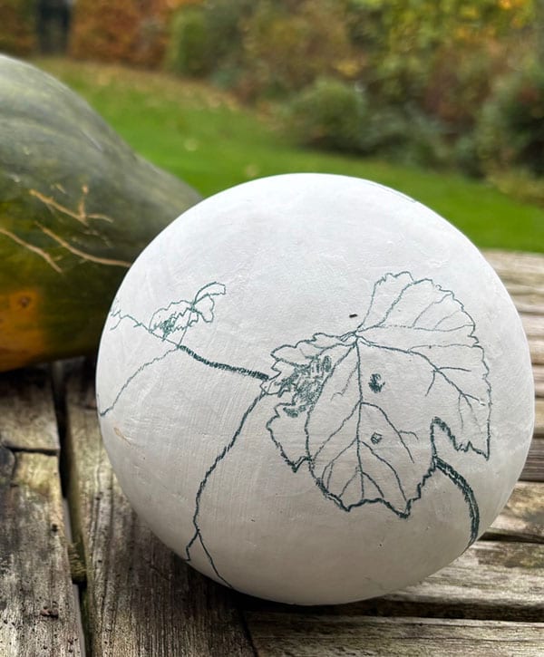 Murielle les dessine au crayon à oxyde ou les grave sur des sphères creuses en terre cuite, à disposer au jardin ou en décoration d’intérieur.